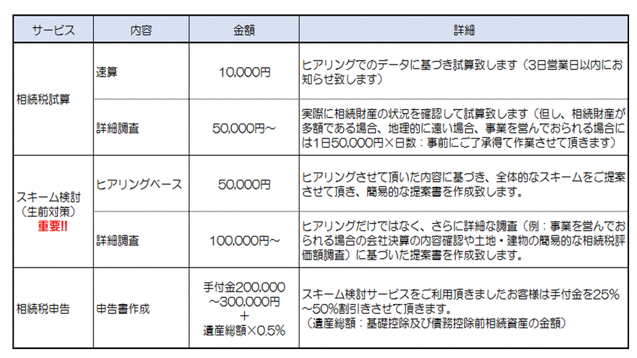 | ✔ 決算申告のみの場合には、申告するにあたり各種帳簿のチェックが必要になりますので、税務・会計 アドバイス料の2ヶ月分頂戴致します。 |